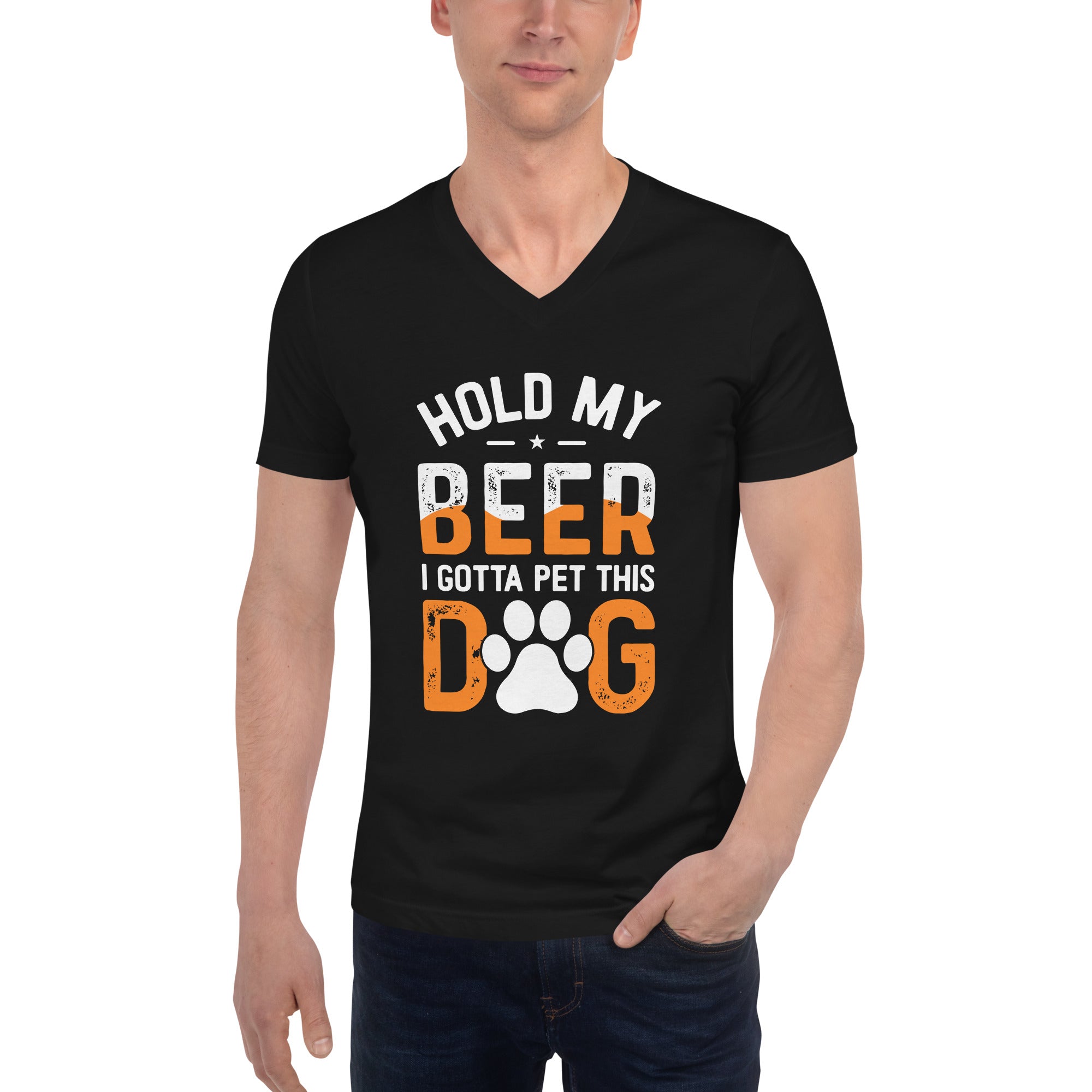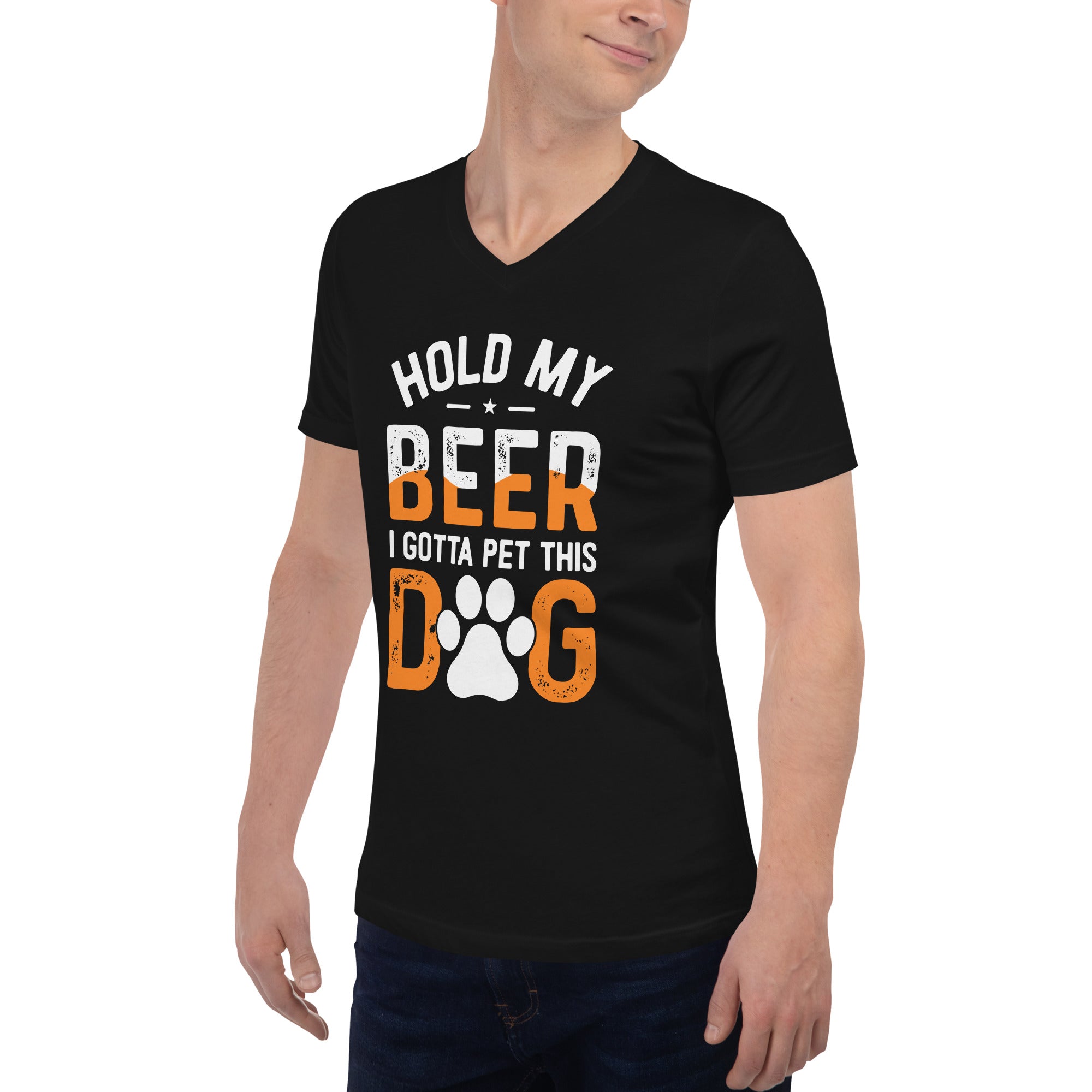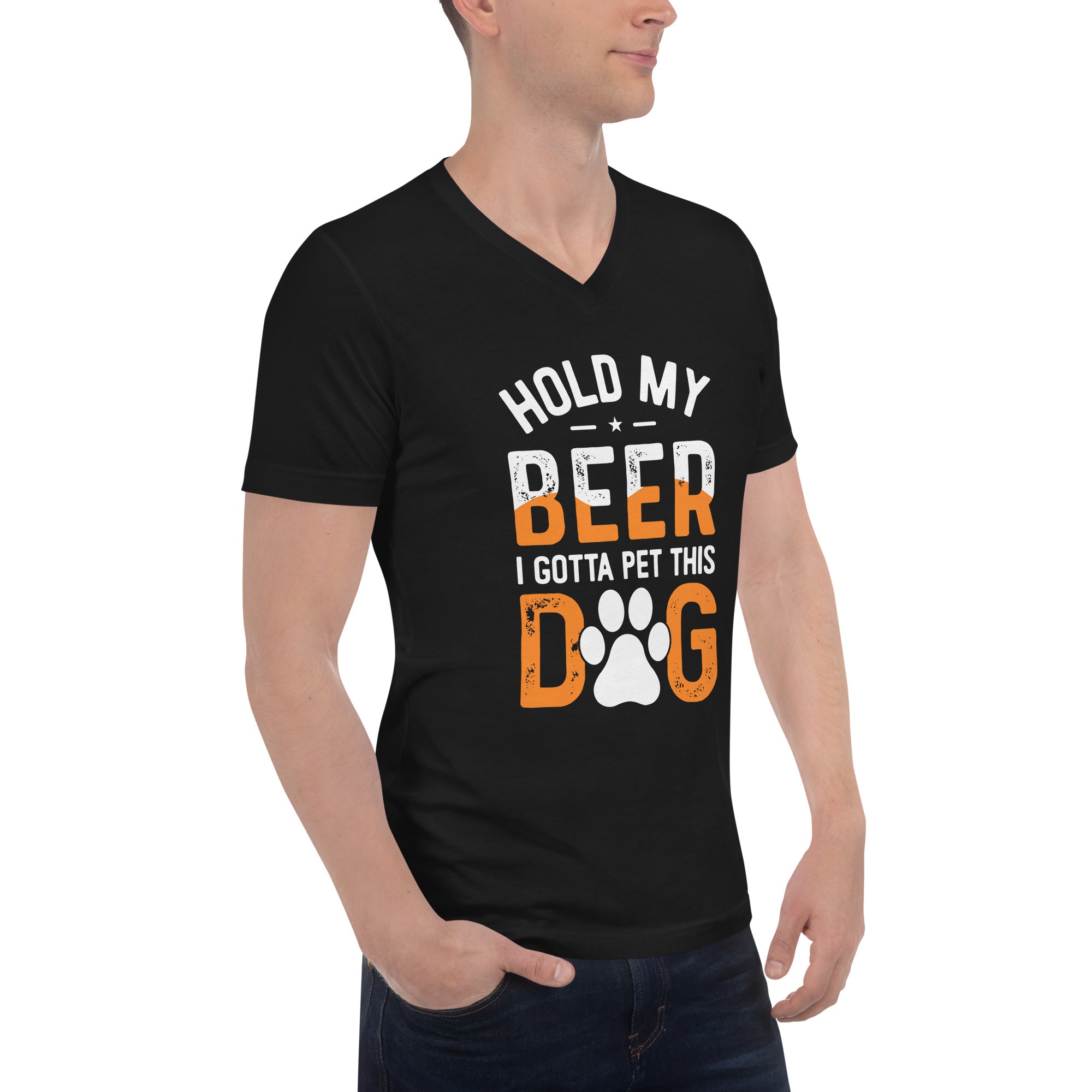 Black Unisex Short Sleeve V-Neck T-Shirt - Hold My Beer #1