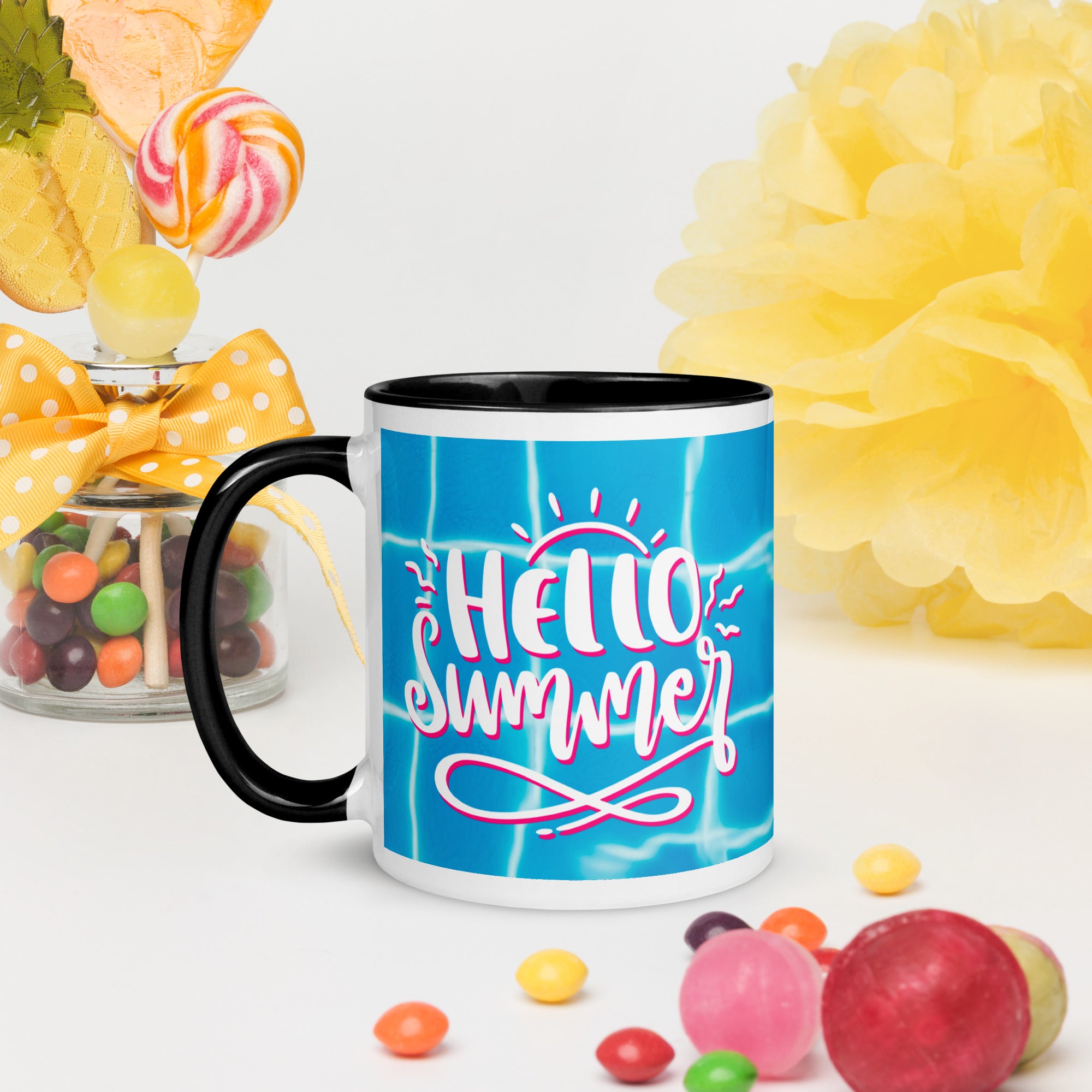 xAdd a splash of colour to your morning coffee or tea ritual! These ceramic mugs not only have a beautiful design on them, but also a colourful rim, handle and inside, so the mug is bound to spice up your mug rack.